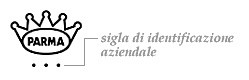 Consorzio del Prosciutto di Parma nel sigillo metallico costituito da una corona circolare.